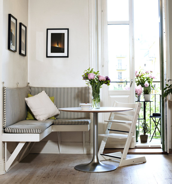 Adoro cantinhos....uma mesa...um vaso...uma cadeira...esse da imagem tá lindo. O estofado branco e preto caiu como uma luva.